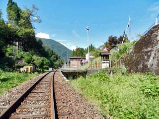 2019/9/26(12:16) 構内を抜けると、線路の左側には、 県道477号「長倉神岡線」が走る。 |