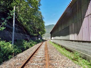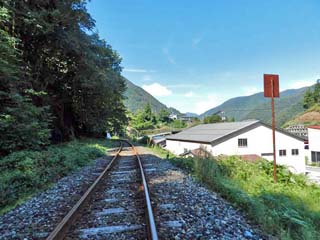 2019/9/26(12:25) 右の建物は、「神岡鉱山前駅」の 外れ(南側)にある「車両検修庫」。 |