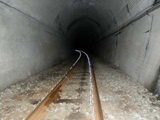 2019/9/26(12:22) 「第一神岡トンネル」。 このトンネルは長く、中でカーブしており、 真っ暗闇。この暗さを体験させようと、 スタッフはオートバイを一時停止させ ライトを消す。 この暗闇は、自分の手が見えない程で、 ライトが自動点灯するマウンテンバイクでは、 味わうことのできない体験であった。 |