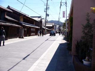 「皇大神宮(内宮)」に参拝するときは、何とか時間を工面してでも、 「おはらい町通り(旧参宮街道)」を歩くことをお勧めしたい。 「宇治橋」から北(下流)に五十鈴川に沿って約800mの「おはらい町通り」は、 切妻・入母屋・妻入り様式の建物が軒を連ね、江戸時代に迷い込んだような趣の中に 「土産物屋」、「食事処」や「歴史館」等があり、風情ある散歩を楽しむことができる。