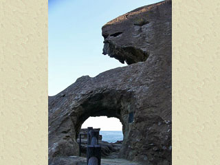 2011/4/5(15:33) 「鬼ヶ城トンネル」の東側を南に入り、400m 程進むと、鬼ヶ城の駐車場がある。 写真は、駐車場内にある土産物屋「鬼の家」。