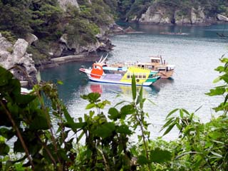 2009/9/12(8:13) 石の道を少し上ったところから見る「石廊崎港」 |