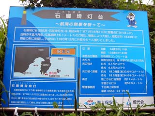 | 2009/9/12(8:34) 「石廊埼灯台」の説明 「明治4年に設置点灯。昭和8年、現在の形に 改築。平成5年に外壁をタイル張りにした」と 書かれている |