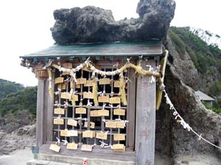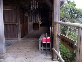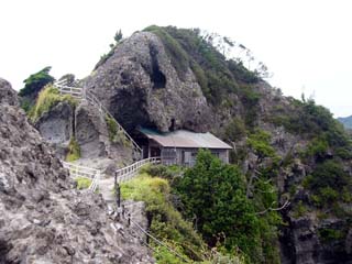 2009/9/12(8:39) 「石廊埼」先端部分の「付け根」にある 「石室神社」。海上安全や学業成就・商売繁盛 ・交通安全・厄除けの神様が祀られている |