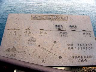 | 2009/9/12(8:41) 「石廊埼」先端にある「伊豆七島展望図」 この日は「利島」辺りまでしか見えなかった |