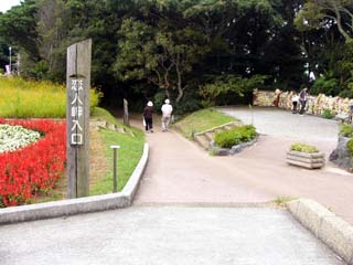 2009/9/12(11:30) Y字の分岐を右に行くと、「恋人岬<金の鐘>」 |