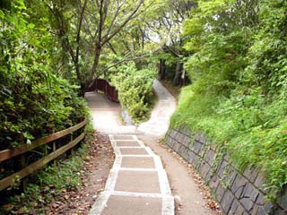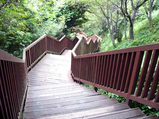 | 2009/9/12(11:32) 「恋人岬<金の鐘>」から「恋人岬<愛の鐘>」 までは、この「木の道」が続く |