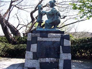 2010/3/26(10:50) 赤い靴母子像。 「童謡「赤い靴」をはいていた女の子のモデルと なった「岩崎きみ」のふるさと「旧不二見村」 を見下ろす、ここ「日本平山頂」に、この像を 建立」とある。 |