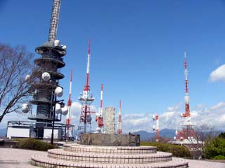 | 2010/3/26(10:52) 「吟望台」。「日本平」には、「東展望台」と 「吟望台」の2つの展望台がある。 「吟望台」の方が景観は優れるようだが、周り には、放送局各社が個別に建設したアナログ放送 用アンテナと、共同で建設したデジタル用のアン テナが林立する。 |