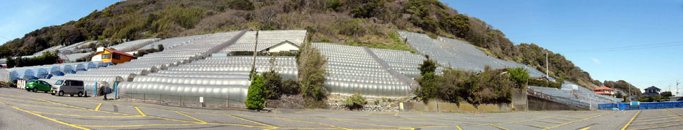 | 2010/3/26(11:22) 「日本平」を南に海岸線まで下ると「国道150号線」。別名「いちごライン」と呼ばれ、「石垣いちご」の温室が並び、 1月~5月上旬には「いちご狩り」が楽しめる。 |