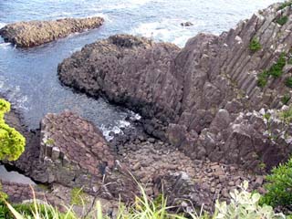 2009/9/11(16:54) 爪木崎の「柱状節理」 写真右上では、柱状になっているのが分かる |