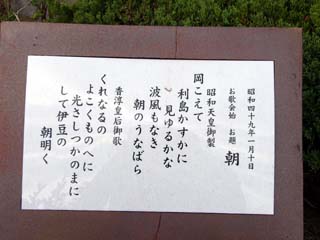 | 2009/9/11(17:19) 駐車場まで戻り、売店に向かって左側を進むと、 「昭和天皇の歌碑」があった |