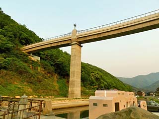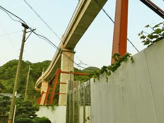 2012/5/9(17:39) 南側から見る「餘部橋梁」。 「餘部橋梁」は、明治45年(1912)に開通。 多くの鉄道ファン、写真家に愛されたトレッスル 式鉄橋は、平成22年(2010)コンクリート製の 橋に架け替えられた。 実は、ここに来るまで古い橋が残されていること を知らなかったのだが、左に古いトレッスル式 鉄橋と思われる橋脚が見えている。