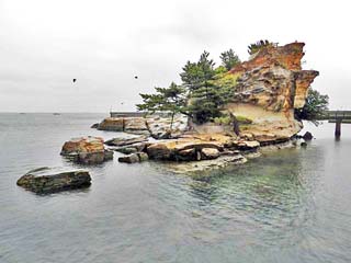 2012/9/23(7:37) 岩屋港ポートパークから見る「絵島」。 「絵島」は、明石への船が発着する「岩屋港」に 隣接する直径50m足らずの小島である。 写真をクリックすると拡大写真(600x450)が 表示されます。