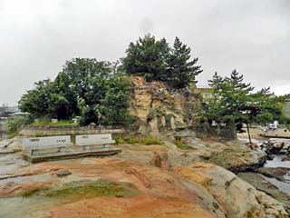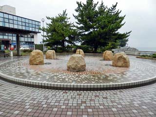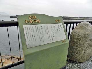 2012/9/23(7:38) 島の入口にある歌碑。 「絵島」は、古来より和歌を詠む名所として 知られ、歌碑には、「西行法師」の歌が 刻まれる。 写真をクリックすると歌碑が拡大表示(800x600) されます。