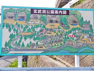 2012/5/9(16:18) 「玄武洞公園案内図」。 この案内図は、南側入口の坂を、ほんの少し 登った所にある。 なお、この地図は北が左の方向に書かれている。 写真をクリックすると案内図が拡大表示 (800x450)されます。