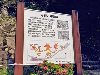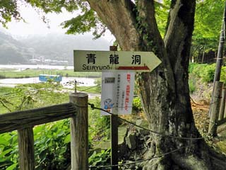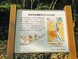2012/5/9(16:21) 坂の途中にある「標識」。 標識の下には、「無料で、玄武洞をご案内します (休憩所にて受付中)お気軽に声をかけてくだ さい」とあり、途中ですれ違った観光客も利用 していたが、地元の人がボランティアで案内を しているようである。