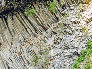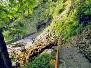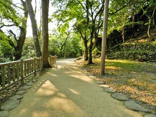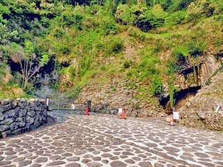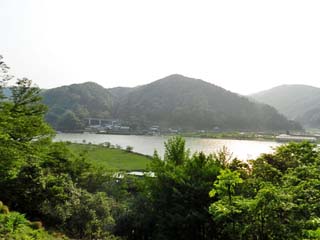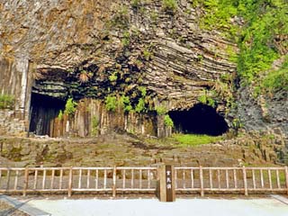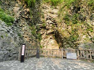 2012/5/9(16:18) 「玄武洞公園」南側の入口。 写真に写る坂道を登る。 入口の看板に「近道です」と書かれていたため、 この入口を利用したのだが、石の博物館「玄武洞 ミュージアム」と、JR「玄武洞駅」からの 渡し舟の乗り場は、北側の入口近くにあるので、 北側の方が「メイン」の入口。この、南側入口は 「裏口」という感じである。