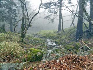 2019/04/23(12:37) 水が流れる「谷筋」。 「谷筋」には、「苔」が群生する。 写真をクリックすると拡大写真(600x450)が 表示されます。 |