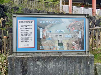 右下の写真、案内板には、「大滝ダムの見どころ」の他、ダム上部への行き方が書かれる。