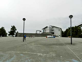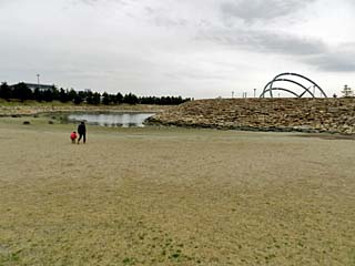 2012/3/22(14:10) 「夕日の見える丘」。 前方、白い建物が「総合休憩所」。 「総合休憩所」の左、道が一段高く見えるのが、 「太鼓橋」である。