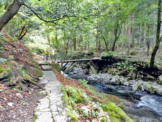 「エチガ谷」左岸を歩く。 道は狭いがコンクリートで舗装されている。 |