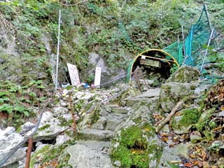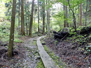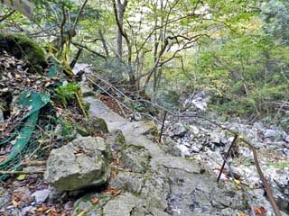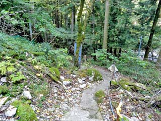 傾斜が急になり、道が荒れてくると入口は近い。 写真をクリックすると拡大写真(450x600)が 表示されます。 |
