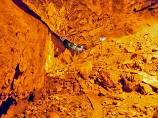 一般公開されているのは、照明や通路、梯子などの整備された、入口から200m程なのだが、