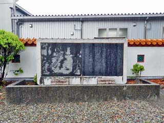 「徐福」の説明と、上陸の絵が刻まれるのだが、 雨に濡れた部分と乾いた部分で、明暗の差が大きく、