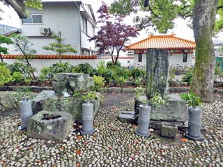 「財」「調」「壮」の文字が刻まれる。 また、池の後ろ、腰高の石塀の上には、 7本の「天台烏薬(てんだいうやく)」が植えられ、