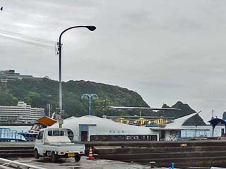 写真奥に写る建物は、「狼煙半島」の麓と山上に 立つ「ホテル浦島」。 写真をクリックすると二代目「ななうら丸」を 切抜く画像(600x450)が表示されます。 |