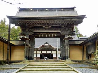 2012/3/23(12:03) 「金剛峯寺 会下門(えかもん)」。 「金剛峯寺」の正門は、南側にあるが、この日は 「女人堂」を見てからの帰りであったので、東側 に建つ「会下門」から中に入る。 「金剛峯寺」は、豊臣秀吉が亡母の菩提のために 建立した「青巌寺」と西隣にあった「興山寺」を 明治期に一本化したもので、高野山真言宗総本山 金剛峯寺の本坊が置かれた宗務上の中心地で ある。