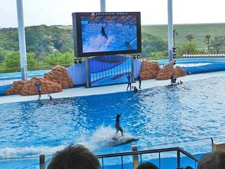 右の写真をクリックすると拡大写真(600x450)が表示されます。 なお、一観客に過ぎない筆者は、いつどこで「イルカ」がジャンプするかを含め、 次に何が起こるのか予想できない。