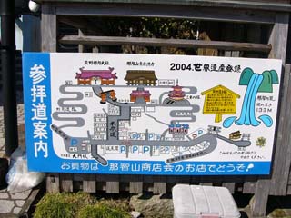 2011/4/6(9:17) 「表参道」を少し上った右にある記念撮影場所。 上まで登れない人のためなのか、霧などで滝が 見えない日のためなのか?。 「那智の滝」と「大門坂」を同時に見れるのは うれしいのだが、どちらも直接自分の目で見て こそ忘れられない思い出になるのではないだろう か?...
