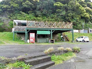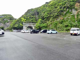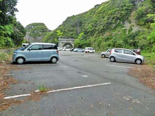 「お蛇浦遊歩道」南側の駐車場。 この駐車場は、「熊野カフェ」から南南東、 約300mにある、トンネルを抜けた先にある。