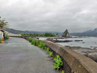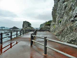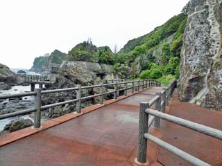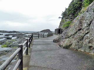 「お蛇浦遊歩道」を北に歩く。 磯の山側に、舗装された遊歩道が続く。 |