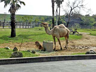 進行方向右(左の写真)に、「アミメキリン」。左(右の写真)には「ヒトコブラクダ」。 両写真共、2.25倍ズームにて撮影。 左の写真をクリックすると拡大写真(600x450)が表示されます。 |
