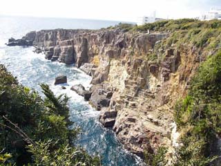 「三段壁」は、海岸線2kmにわたる巨大な岩の