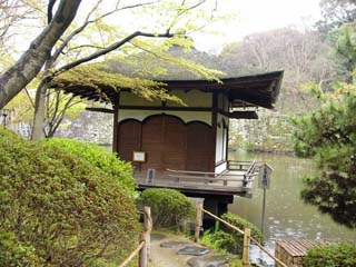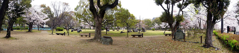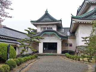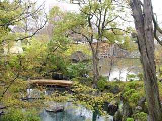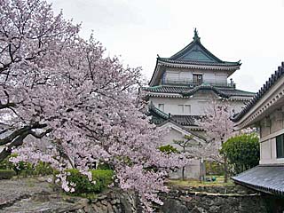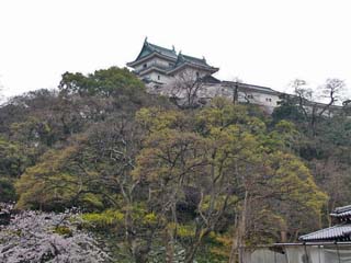 2011/4/8(13:04) 「天守郭(曲輪)」が見えてきた。和歌山城の 「本丸」は、東の「本丸御殿」と西の「天守郭 (曲輪)」から構成され、「本丸御殿」は、 「上水道貯水池」に変わり、「天守郭(曲輪)」 も、戦火で焼失するが、昭和33年(1958)鉄筋 コンクリート造の天守が復元される。