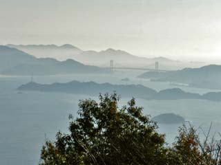 2013/11/23(8:16) 「筆影山」展望台から見る「生口橋」。 11.75倍ズームにて撮影。 因島と生口島の間に架かる「生口橋」は、「佐木島」の 奥に、高さ125mの主塔だけがうっすらと写る。 写真をクリックすると拡大写真(600x450)が 表示されます。 この後は、「筆影山」から、南西に1km強程の所にある 「竜王山」に向かいます。 竜王山のページに進む |