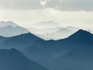 2013/4/17(7:05) 道の駅「みはら神明の里」から見る「筆影山」と「竜王山」。 「筆影山」と「竜王山」は、広島県三原市の南にあり、 瀬戸内の多島美と「しまなみ海道」の橋が展望できる山 として知られる。 写真では、二つの山が重なって見えているが、 一番高く写る山が「竜王山」で、「筆影山」は、 「竜王山」の左手前にある。 |