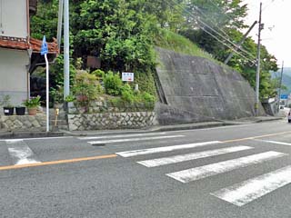 国道375号線の横断歩道を渡ったところには、 「鳳源寺 右の方向に30m」の標識がある。 |