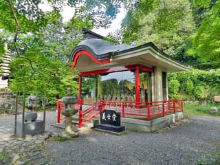 「義士堂」。 中には、「四十七士」の木像が安置されている。 写真をクリックすると「義士堂」の案内板(800x600)が 表示されます。 |