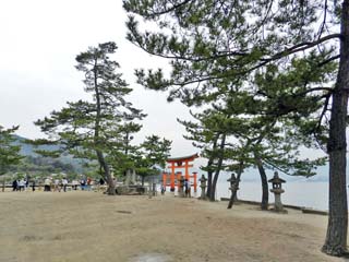 2013/4/18(9:57) 「御笠浜(みかさのはま)」。 雪の積もる日に、「御笠浜」から見る景色は「御笠浜鋪雪 (みかさのはまほせつ)」と呼ばれ、「嚴島八景」の一つに 選ばれている。 |