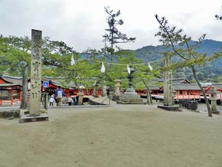2013/4/18(9:48) 「世界遺産 嚴島神社」の案内板。 「嚴島神社」の境内地と「弥山(みせん:標高535m)」の 北斜面は、平成8年(1996)にユネスコの世界遺産に 登録されている。 写真をクリックすると「案内板」が拡大表示(800x480) されます。 注:案内板の標題には、「厳島神社」と書かれているが、 本HPでは、廿日市市観光課のHPで使用する 「嚴島神社」とした。 |
