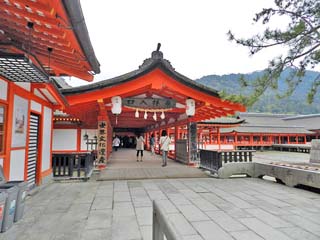 2013/4/18(10:05) 「参拝受付」を済ませ「嚴島神社」の中に入る。 なお、「嚴島神社」の中は、基本的に一方通行になって おり、出口は反対(西)側にある。 |