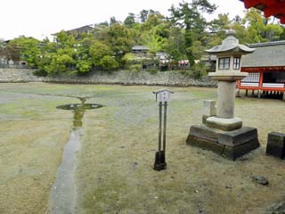 2013/4/18(10:07) 「鏡の池」。 嚴島八景の一つで、「水面に映る秋の名月を詠じた 古歌が多く残されている」とある。 潮が引いた時だけ丸い池が現れる。 |
