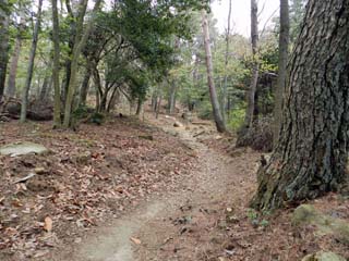 2013/4/17(11:13) 「かぶと岩コース」に入ると、道は歩きやすい遊歩道から 足元に注意の必要な登山道へと変わる。 |