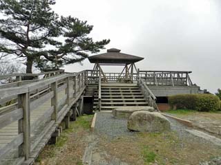 2013/4/17(11:25) 「かぶと岩展望台」。 展望台を支えているのは頑強なコンクリート造りだが、 上部は木で造られた展望台である。 |