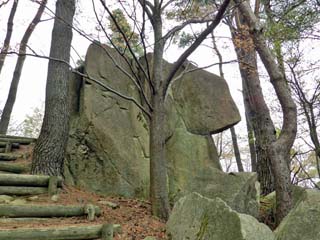 2013/4/17(11:31) 「かぶと岩展望台」を後に、「かぶと岩コース」を下ると、 すぐ右側に巨大な岩があった。 |